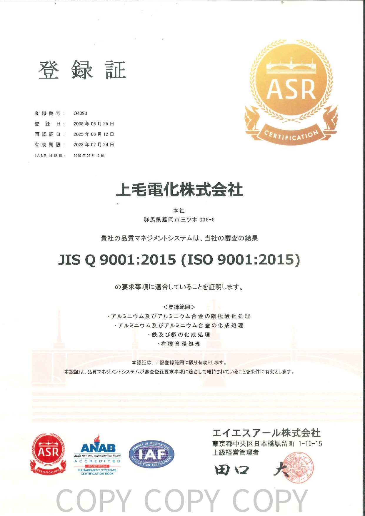 - 品質マネジメントシステムの要求事項を満たし、その有効性を継続的に改善することにより、品質上の不具合発生を撲滅する