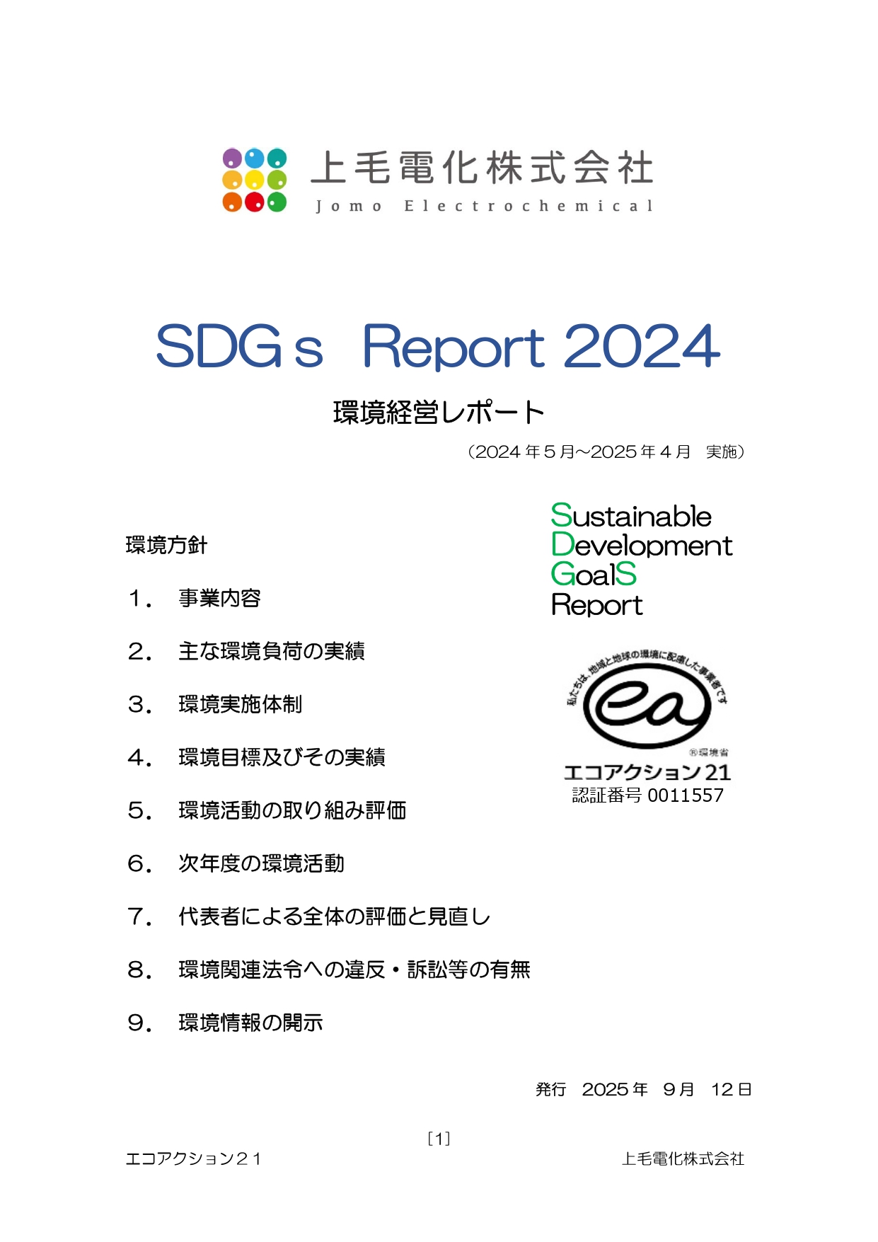 上毛電化は、企業理念及び環境方針に基づき、SDGsの達成に貢献しています。